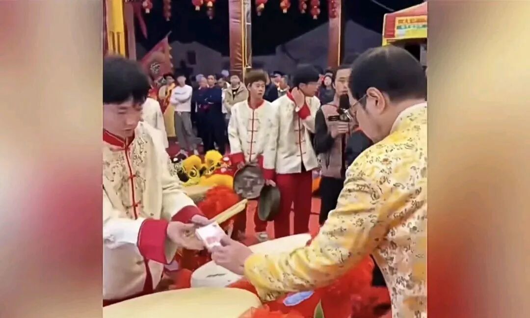 舞狮队接过钱一数——好家伙整整一万元。